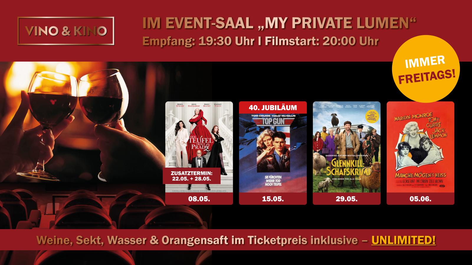 Vino & Kino am Freitag, 08.05.26 & aufgrund der großen Nachfrage am Freitag, 22.05.26